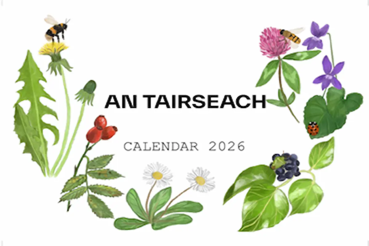 Our 2026 calendar is a love note to the biodiverse richness of Co. Wicklow. Every species on these pages is one you might find on a walk through the Wicklow mountains, through our bogs and our forests, and as you meander along the riverbeds and our extensive seashores. We hope this calendar will inspire you on your nature walks, as you deepen your relationships with the more-than-human world. We hope that as you stop to notice the leaves, insects and berries, that the spirit of love in the heart of all living things replenishes your spirit. May your time in nature strengthen your faith, help you to set your eyes on love, beauty and all things good. Price: €15. To place an order, please call 0404 61833 or email: info@antairseach.ie